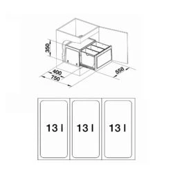 Blanco Flexon II – Cubo De Basura Extraíble, Con Compartimientos, Capacidad 73 L 521475