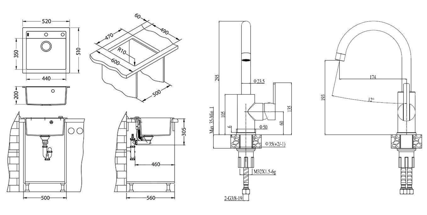 Conjunto de fregadero Formic 20 con control de desagüe y grifo de fregadero Tonia