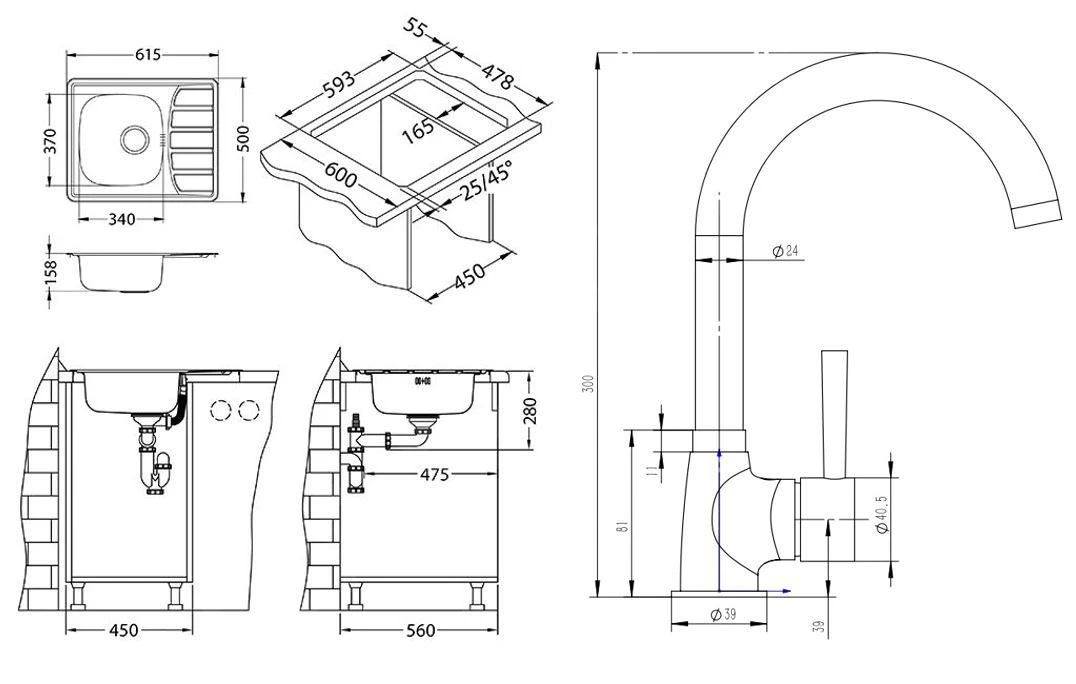 Conjunto de fregadero Zoom 10, grifo Karina y un regalo