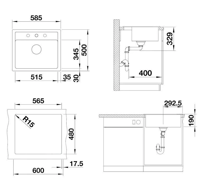 - dimensiones del seno de fregadero 515 x 345 mm