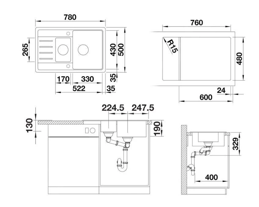 Blanco Supra 400 – Fregadero, 500×440 Mm, Con Control De Desagüe, Acero Inoxidable Cepillado 526353
