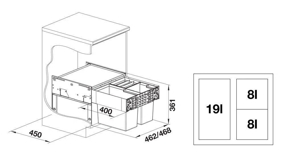 Blanco Select – Papelera Incorporada, Dividida, Volumen 35 L 526202