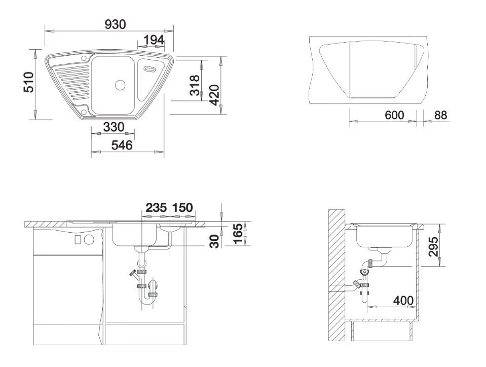 - incluye el juego de desagüe con tubo que ahorra espacio a filtro de tamiz 3 1/2“