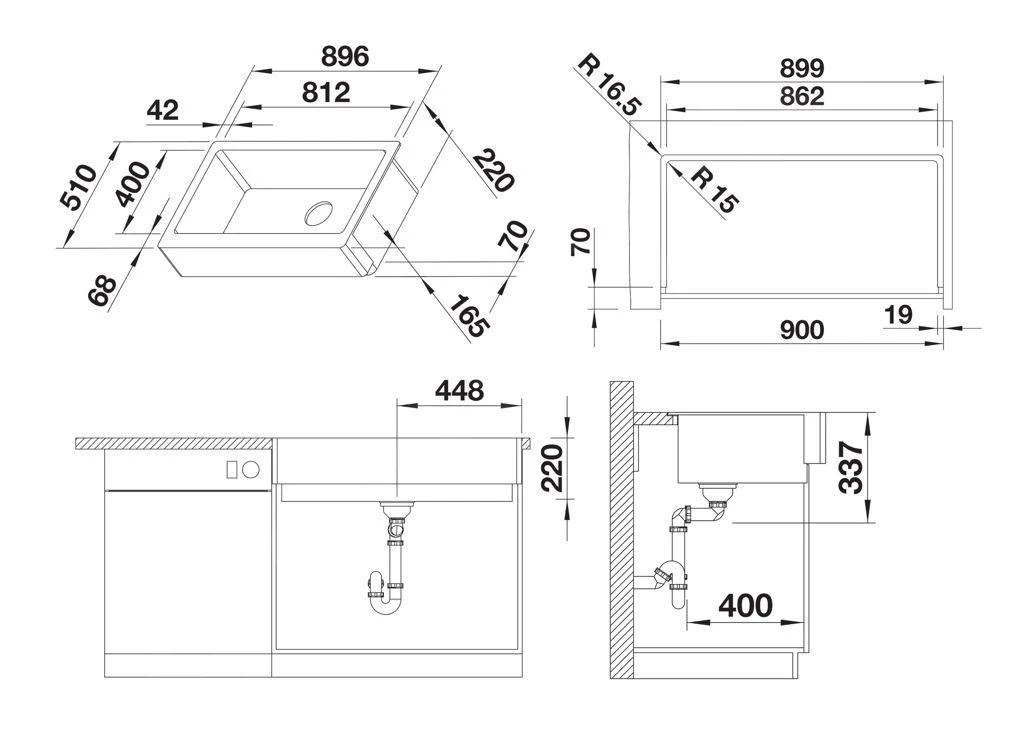 - juego de desagüe y rebosadero con tubo que ahorra espacio