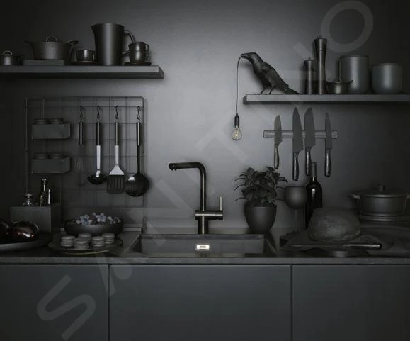 El mezclador electrónico de fregadero tiene un elegante acabado en negro. El color se ha aplicado mediante el método de recubrimiento PVD. Por lo demás, el Atlas Neo de Franke es totalmente de acero inoxidable, con caño giratorio de 180° y sin ducha. Se alimenta con 4 pilas de lápiz AA.