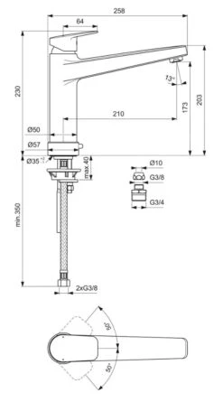 Ideal Standard CeraFlex – Grifo De Cocina, Plegable Bajo Ventana, BlueStart, Cromo BC132AA