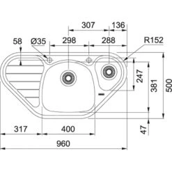 Franke Spark – Fregadero SKX 651 E, 960×500 Mm, Acero Inoxidable 101.0617.552
