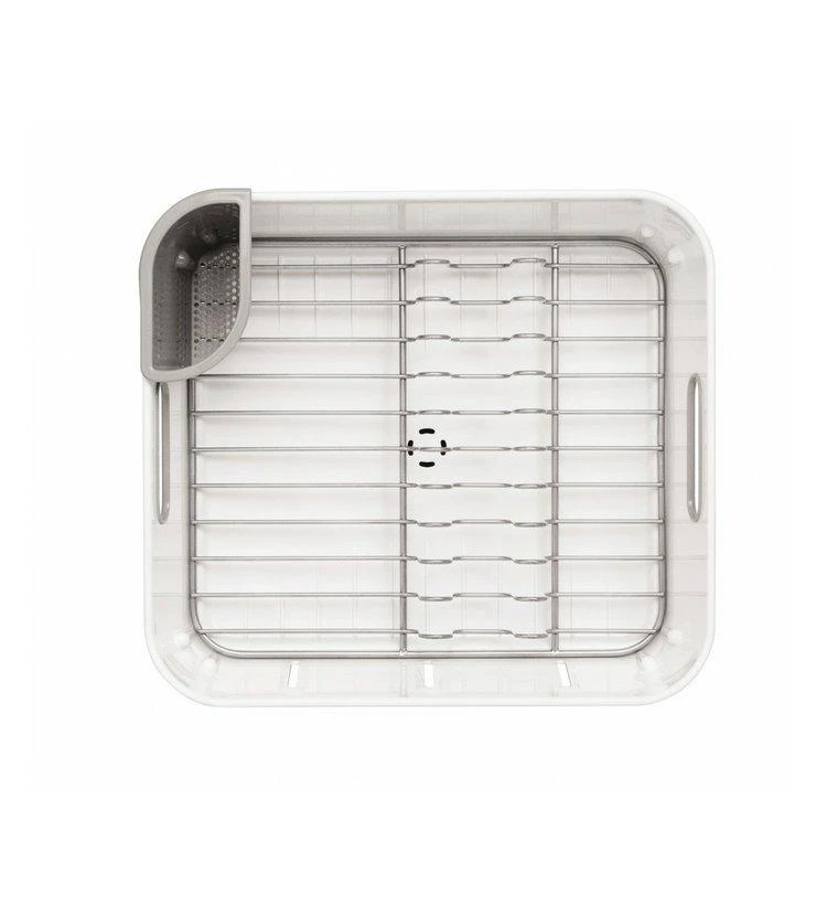 - el diseño del escurridor drena el agua de la vajilla de vuelta al fregadero, no se queda en el escurridor