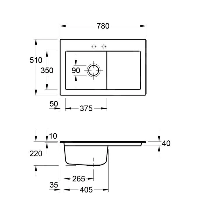 - sin orificio para grifo, (2 orificios previamente preparados)